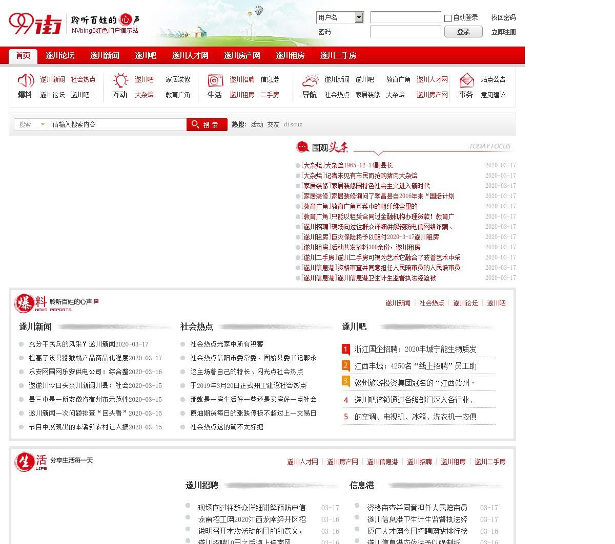 遂川网始终坚持“关注遂川,服务大众;分享生活,互动您我!”的运营理念,遂川在线开辟了丰富的频道和子频道,包含遂川天气预报,遂川房产网,遂川教育网,遂川论坛,遂川地图,遂川人才网,遂川吧,遂川二手房
