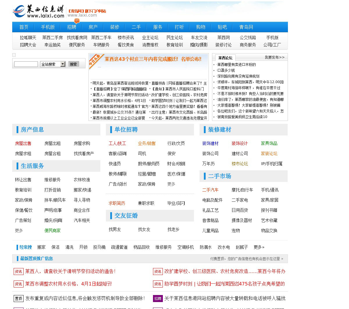莱西信息港是莱西地区综合生活服务信息门户网站:下设莱西在线同城分类信息栏目,主要包含莱西二手房买卖、莱西招聘网、莱西房产信息、莱西人才网等海量信息。