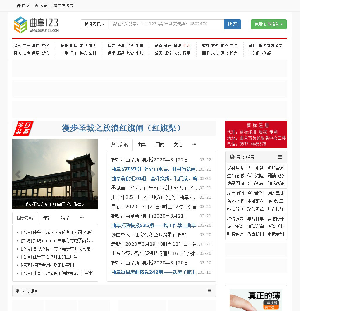 曲阜123是曲阜市综合性门户网站,在这里你可以看新闻、找工 作、买房子、查电话、寻优惠、觅美食、谈恋爱、追时尚。
