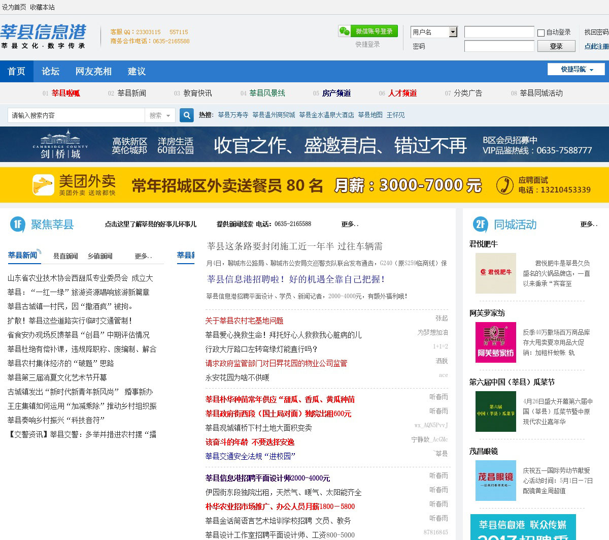 莘县最大的综合信息门户网站,网站下设莘县新闻、莘县开心网、民生、房产频道、数码频道、分类广告、莘县茶秀(论坛)、摄影婚庆、风景线、美食、家居装修、人才、校园、法律、许愿天空等20多个本地特色栏目。