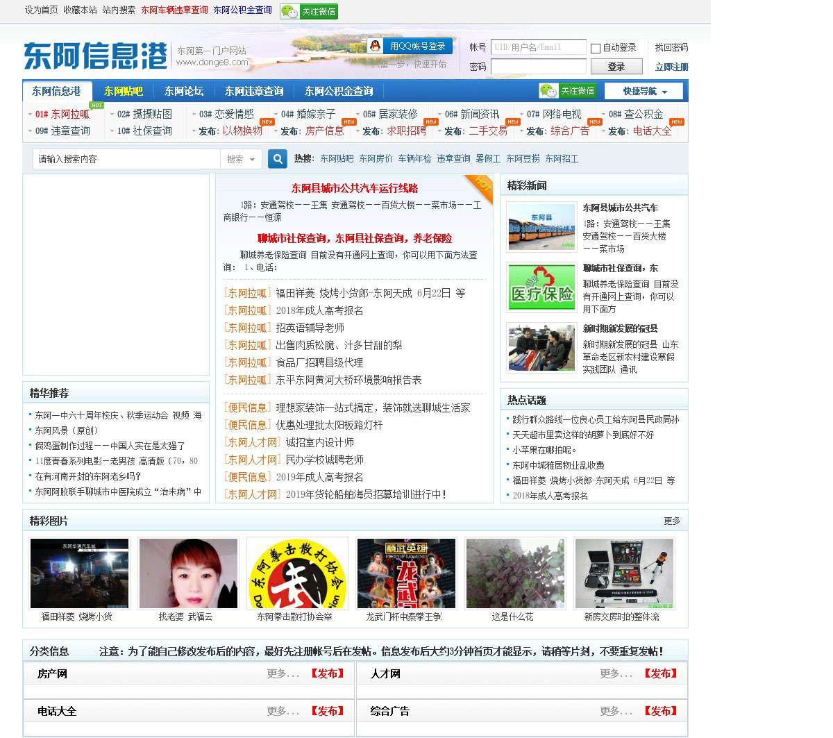 东阿信息港是东阿县最大门户网站,提供东阿房产信息,二手交易,人才招聘,征婚交友,东阿车辆违章信息查询等,拥有东阿拉呱,东阿新闻,便民信息等热门栏目
