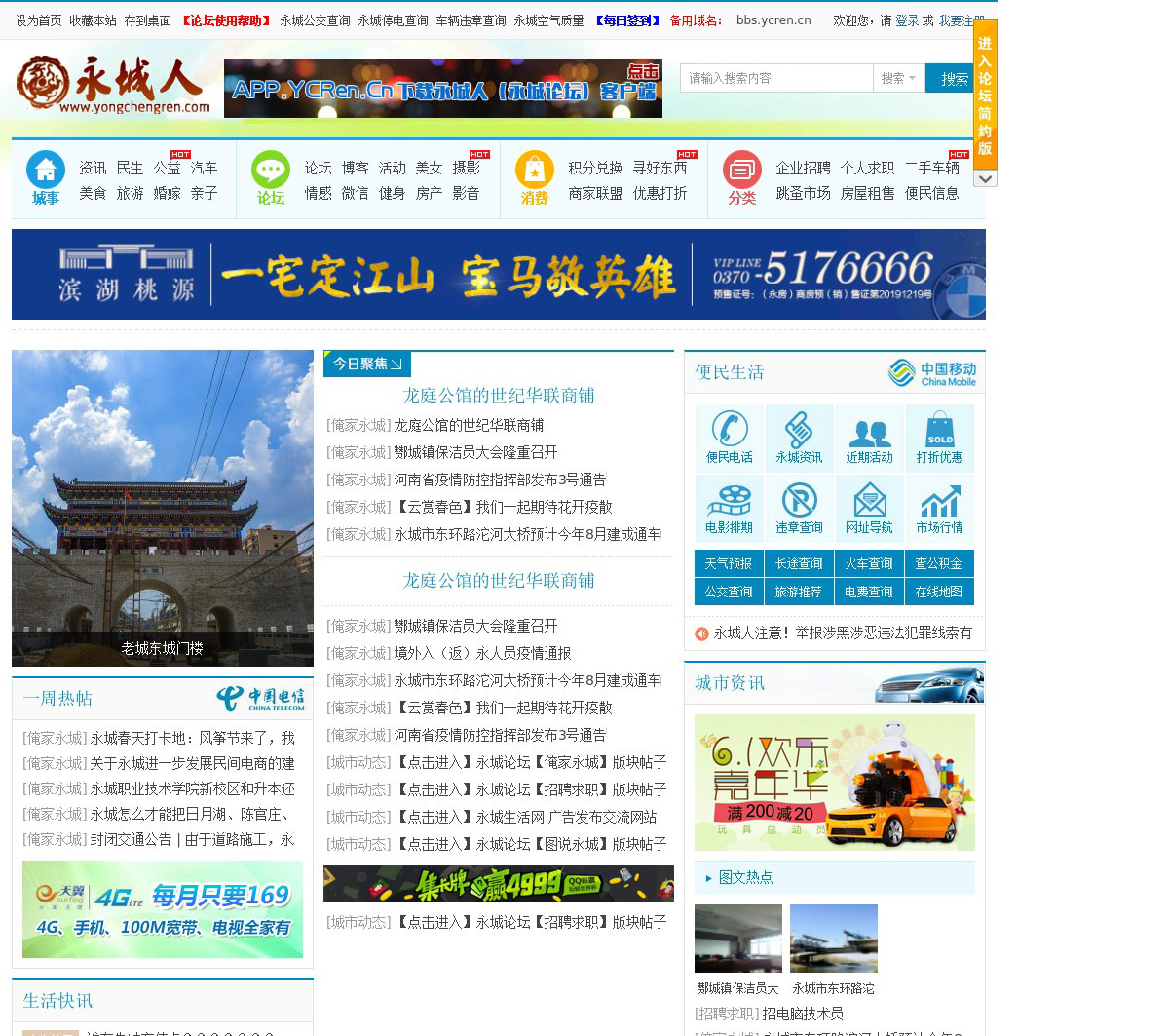 永城人论坛是永城综合门户网站,有人气的生活交流互动平台,网站内容涵盖永城的衣食住行、吃喝玩乐、永城资讯等方方面面。永城人论坛将会为更好服务永城百姓而不断努力!