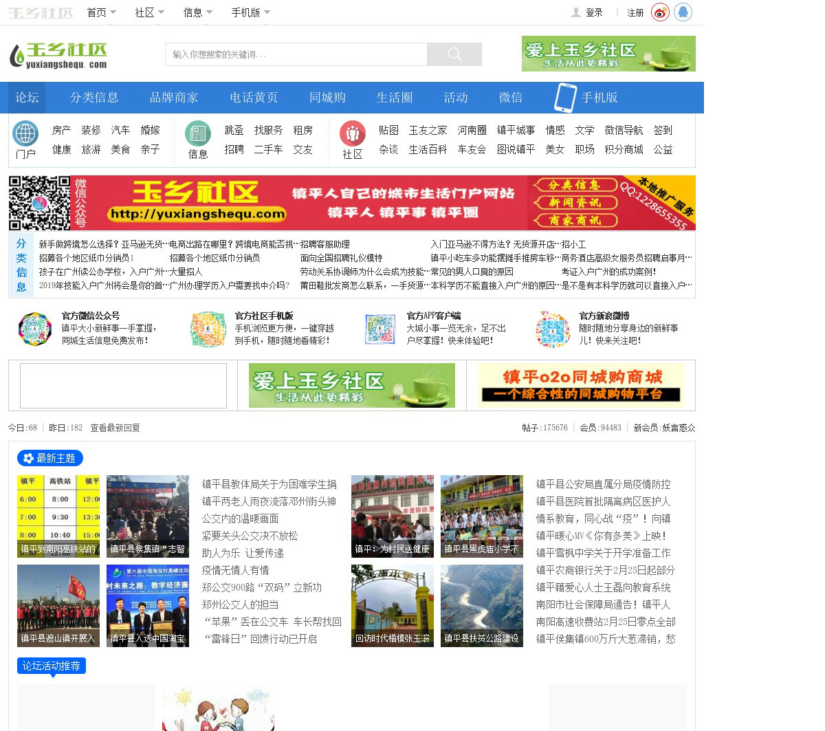 玉乡社区是最大的综合性镇平论坛,拥有房产、汽车、家居、美食、婚嫁、旅游、交友、购物、时尚、娱乐、教育、健康等论坛频道,为您提供最全面的镇平信息服务。