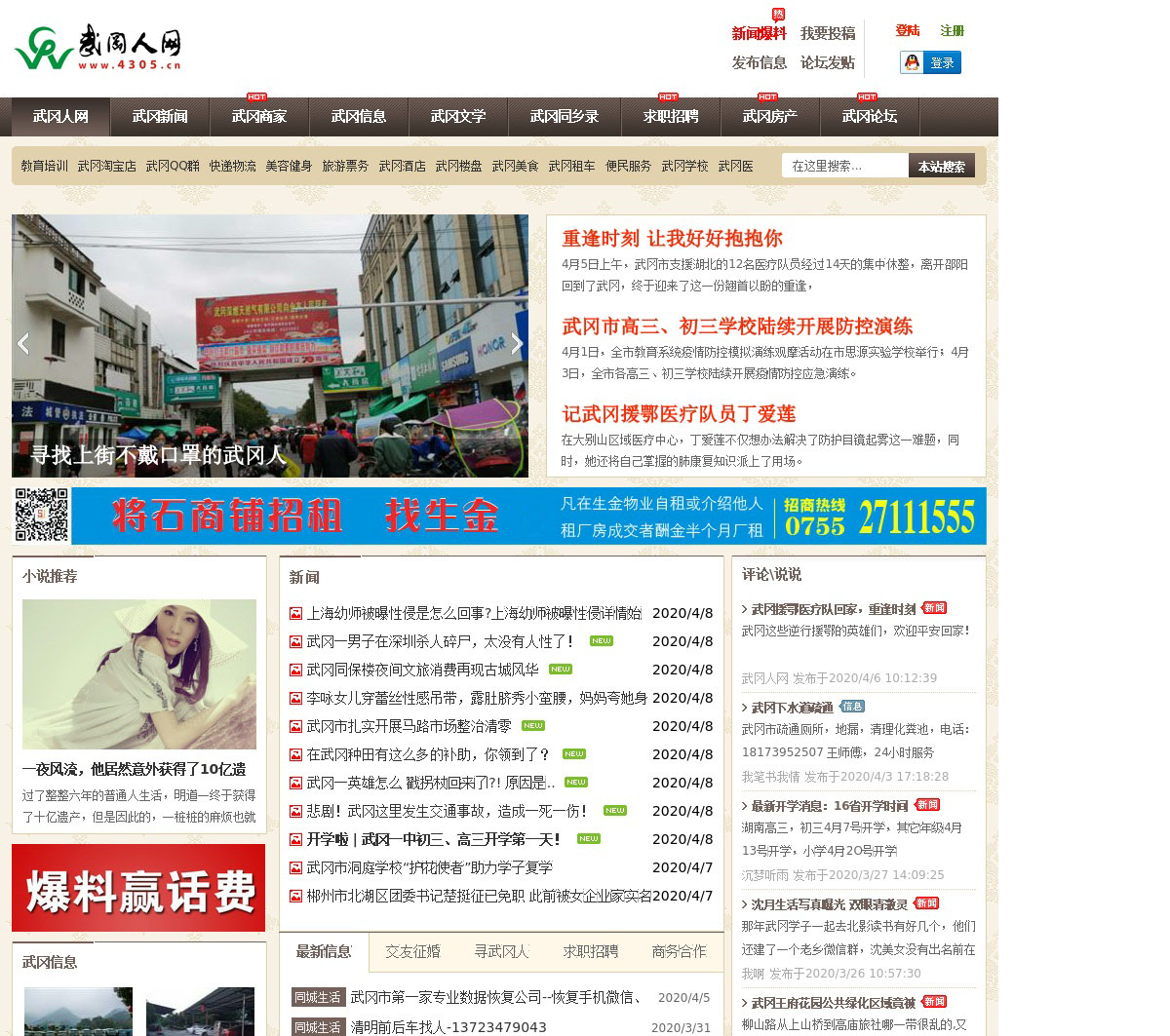 武冈人网4305.cn是湖南省武冈市综合门户网站,武冈的生活社区网,致力于提供武冈新闻资讯、生活资讯、消费购物、人际交流等服务为一体的大型互动平台!