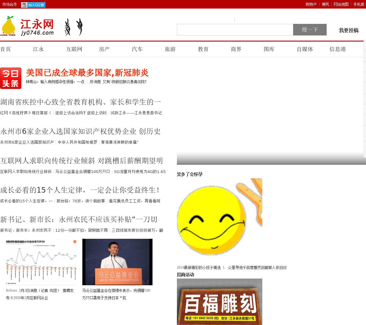江永网是一家江永第一信息门户网站,集江永信息网、江永论坛、江永房产、江永企业、江永电商等综合性平台。为江永家乡人有一个最新资讯、娱乐、交友、活动和工作提供便捷,促使江永电子商务、互联网更快的发展贡献一份力量。