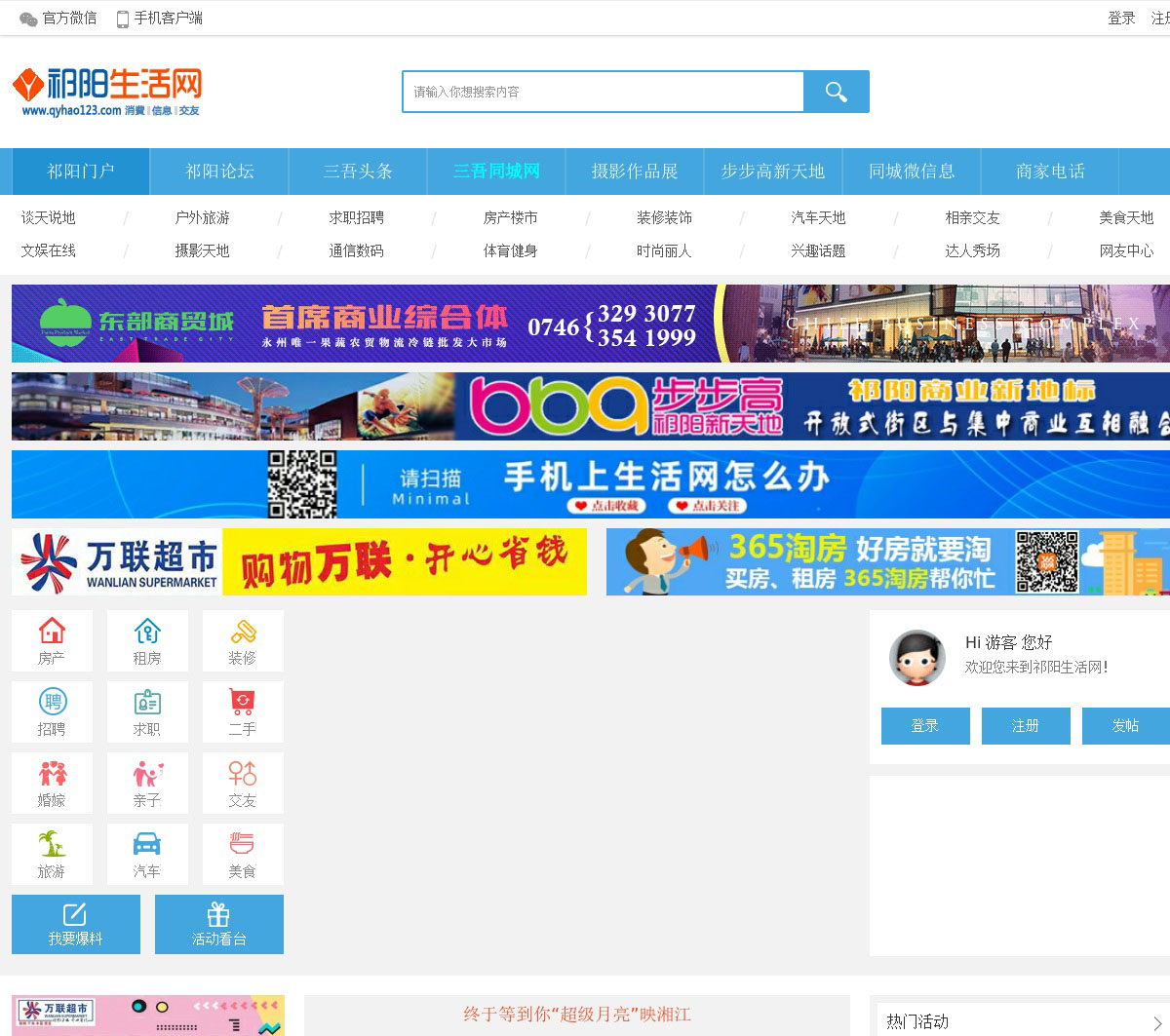 祁阳生活门户,祁阳生活网是一个专门提供祁阳本地生活、消费信息、教育招考和情感交流的网上生活家园,开设祁阳论坛、商家大全等频道,免费分类信息发布、生活物价信息查询、祁阳本地历史文化知识等内容。