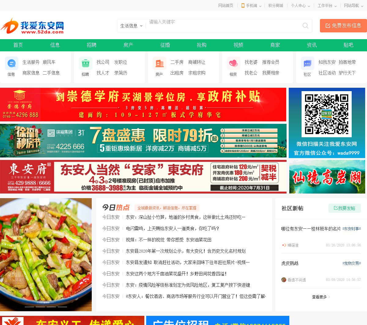 我爱东安网,东安县信息网,房产网,人才网,网站包含东安论坛,东安人才招聘、分类信息、东安房产、东安商家、商城、团购、新闻等各类信息,是湖南省永州市东安县人气最旺地方社区门户网站,一直用心打造东安百姓生活信息综合交流平台;