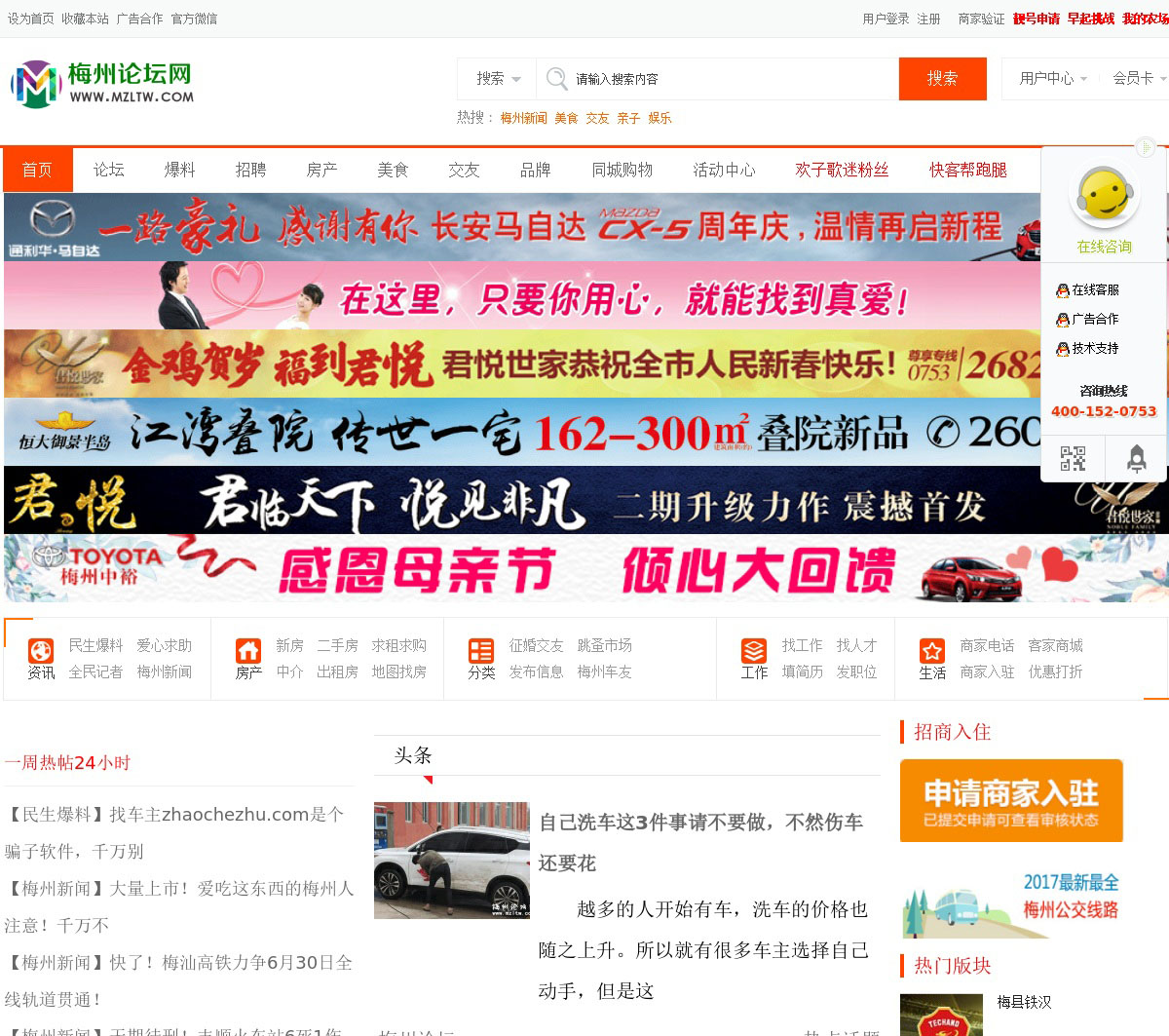 梅州门户网(www.mzltw.com)是客都梅州文化旅游生活消费门户网站.贴近生活,服务民生.为网民提供梅州天气、梅州新闻资讯、梅州论坛、梅州团购、梅州旅游、梅州房产等多频道的服务,旨在建立一个以梅州本地文化为主体的健康网络品牌.