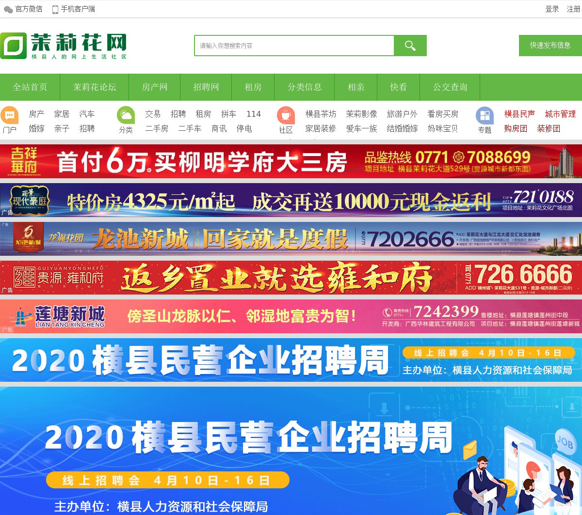 横县网提供横县新闻,横县同城分类信息,横县商家,横县风景旅游等内容,茉莉花论坛是横县最聚人气的本地网站