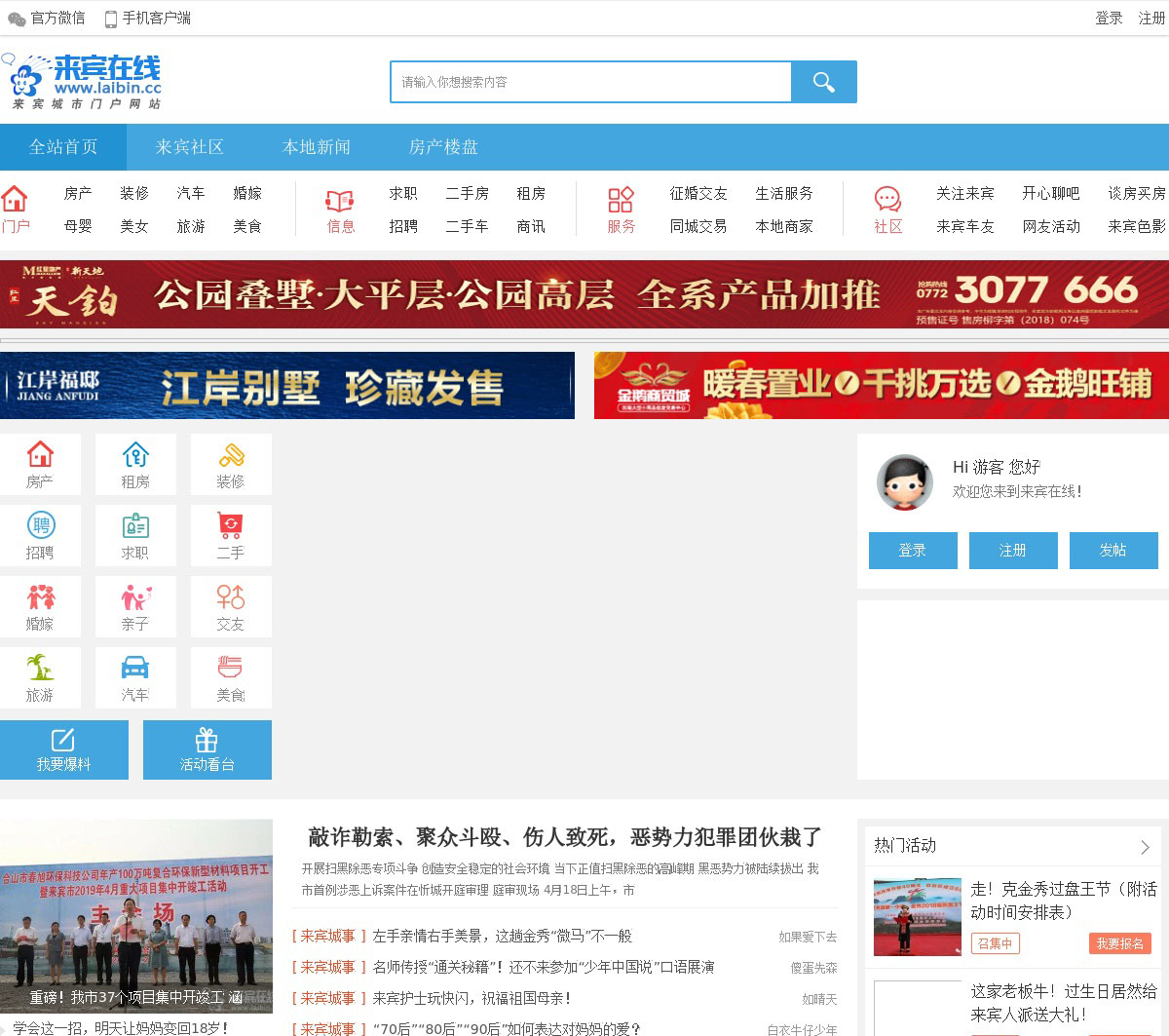 来宾在线是来宾市本地最大的城市门户社区,每天有万来宾人在这里分享生活乐趣、表达主张,在这里你可以找到来宾招聘、二手、租房等实用生活信息,还可以结识新朋友。年建站,至今已有年。