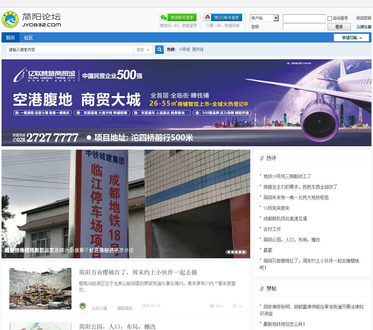 简阳论坛(www.jy.com)搭建于年月日,简阳地区最受欢迎,人气最旺的综合门户网站,简阳论坛提供与简阳人生活相关的便民信息和交流社区。