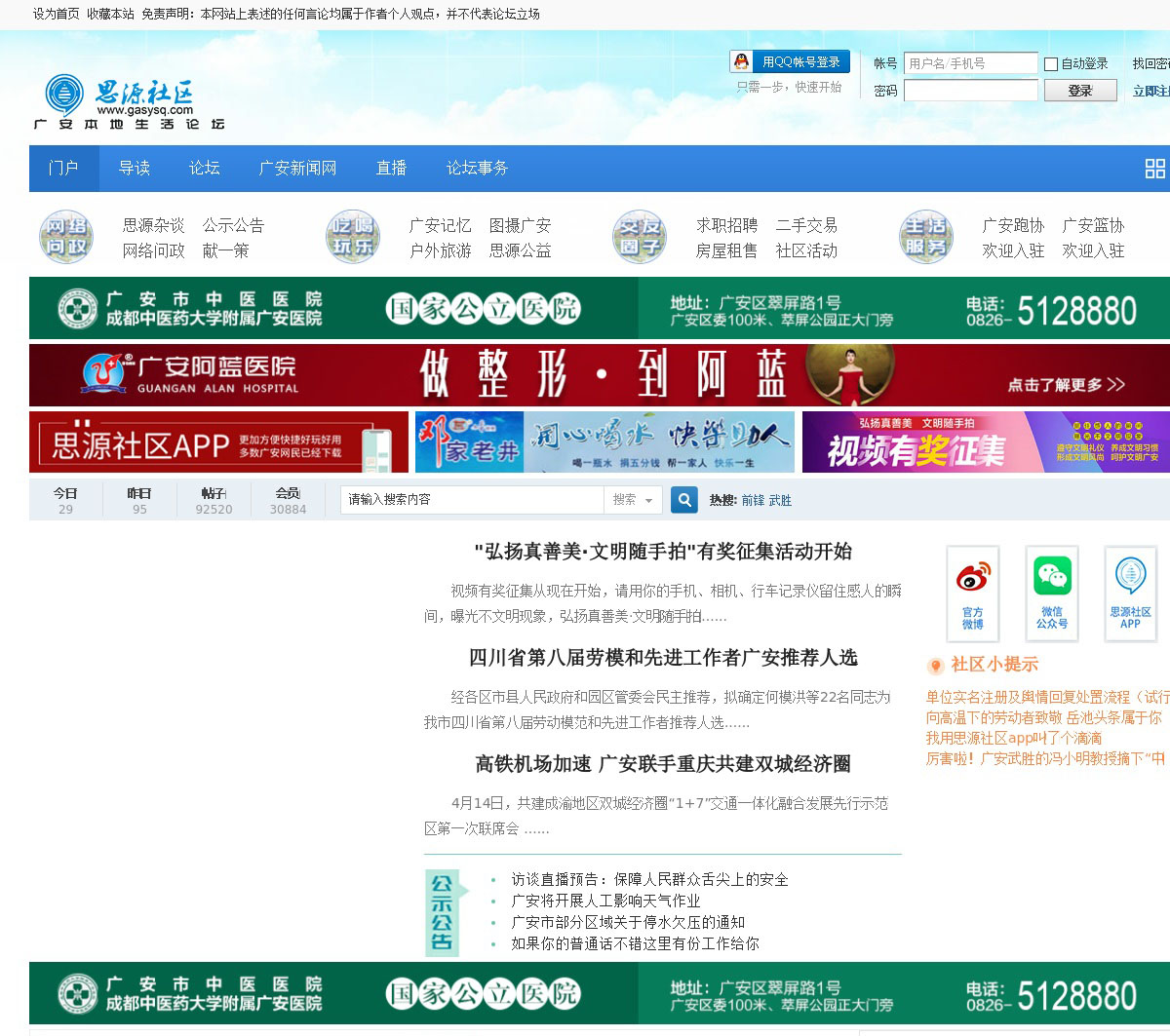 思源社区是讨论广安民生、网友报料、衣食住行、房地产、生活信息、文学、摄影、旅游等话题的广安本地论坛。