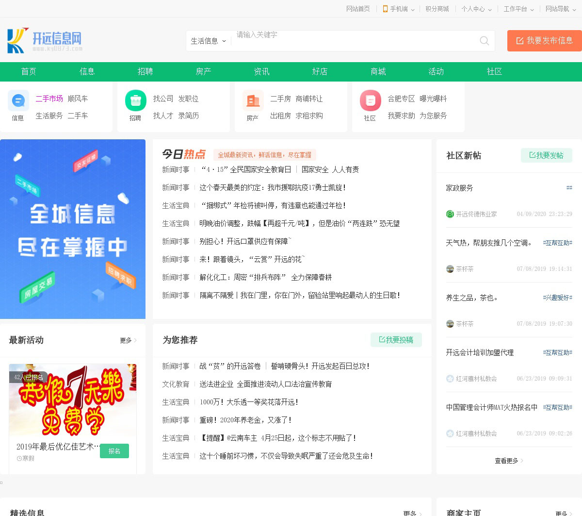 开远信息网,为你提供房产、招聘、黄页、团购、交友、二手、宠物、车辆、周边游等海量分类信息,充分满足您免费查看/发布信息的需求。开远在线,一站式本地生活服务平台。
