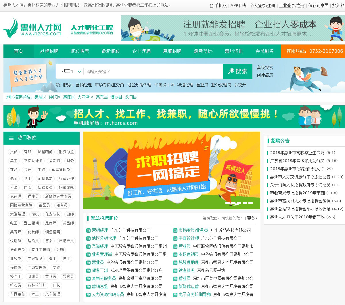 惠州人才网,与富海人才网,西子人才网,惠州招聘网,惠州人才热线并列的惠州专业人才招聘求职网站!惠州人才网是惠州地区公益免费的求职招聘O2O一站式服务平台,致力成为惠州第一的惠州人才招聘求职网!