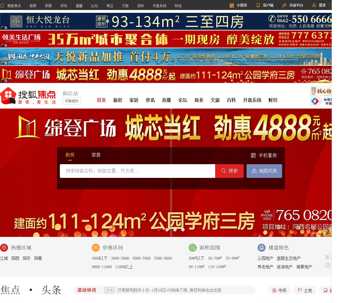 阳江搜狐焦点网为购房者提供阳江房产信息、家居装修资讯,阳江房产楼盘详情、买房流程、业主论坛、家居装修等全面内容信息,阳江搜狐焦点网互联网的购房平台。