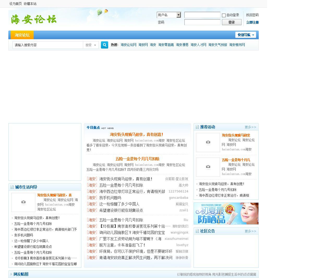 海安论坛(haianluntan.com)海安人气论坛,海安论坛网是海安最大的门户网站,涵盖海安论坛、海安人才网、海安楼市网、海安人论坛、海岸零距离、海安网