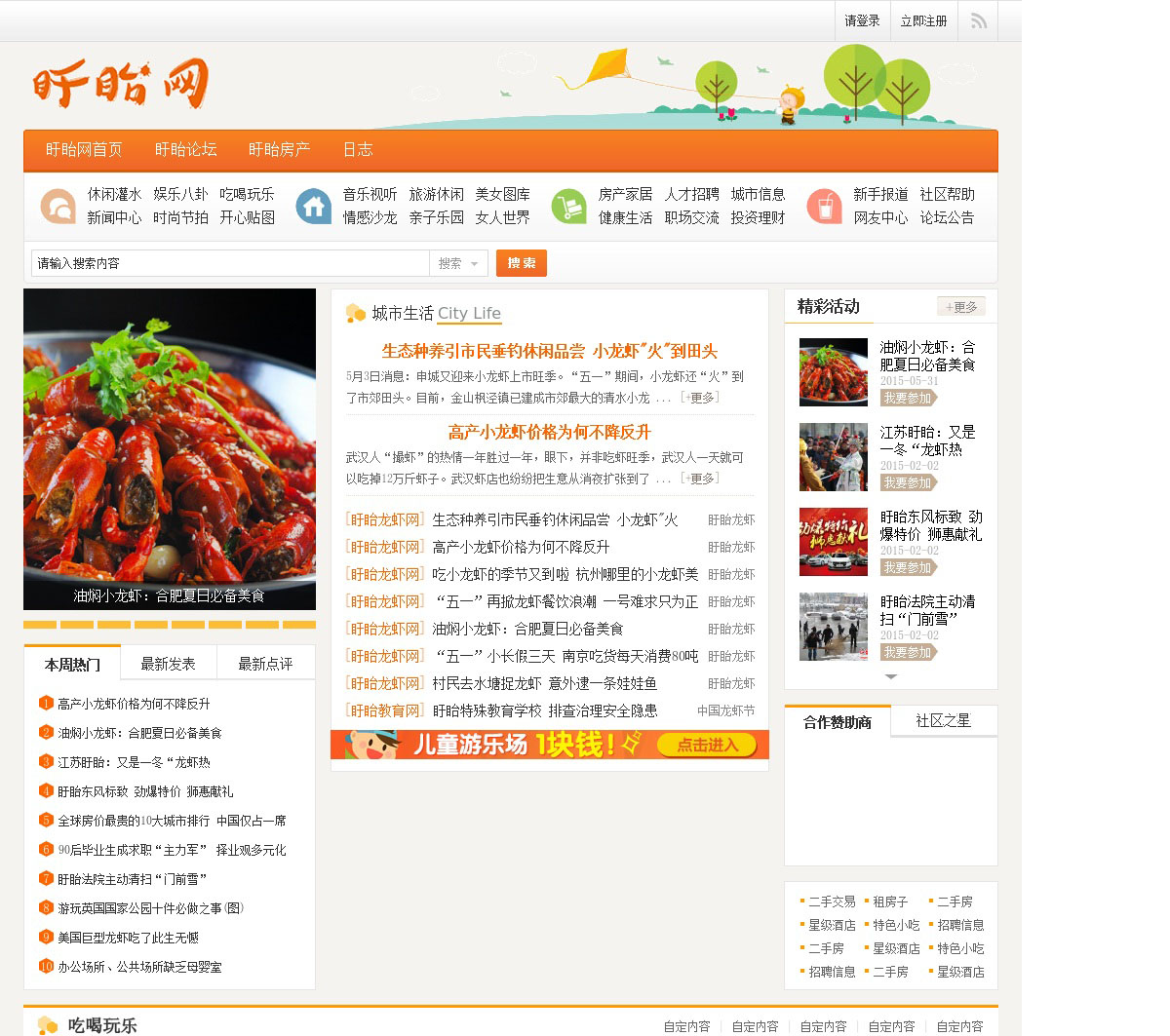 盱眙网是盱眙县第一门户网站,专门提供盱眙本地生活,关注盱眙发展的网络平台,含盱眙房产网、盱眙龙虾网以及盱眙人才网,提供衣食住行各类生活资讯的盱眙论坛。