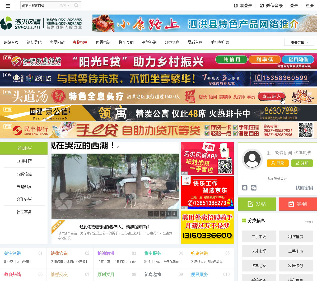 泗洪风情网仅定位于泗洪,及周边地区,所有用户及内容都来自于生活在泗洪以及热爱和关注泗洪的人们。泗洪风情网论坛致力于打造纯正的泗洪网络社区,泗洪论坛为生活在泗洪以及热爱关注泗洪的人们提供一个有趣有益的互助分享平台。