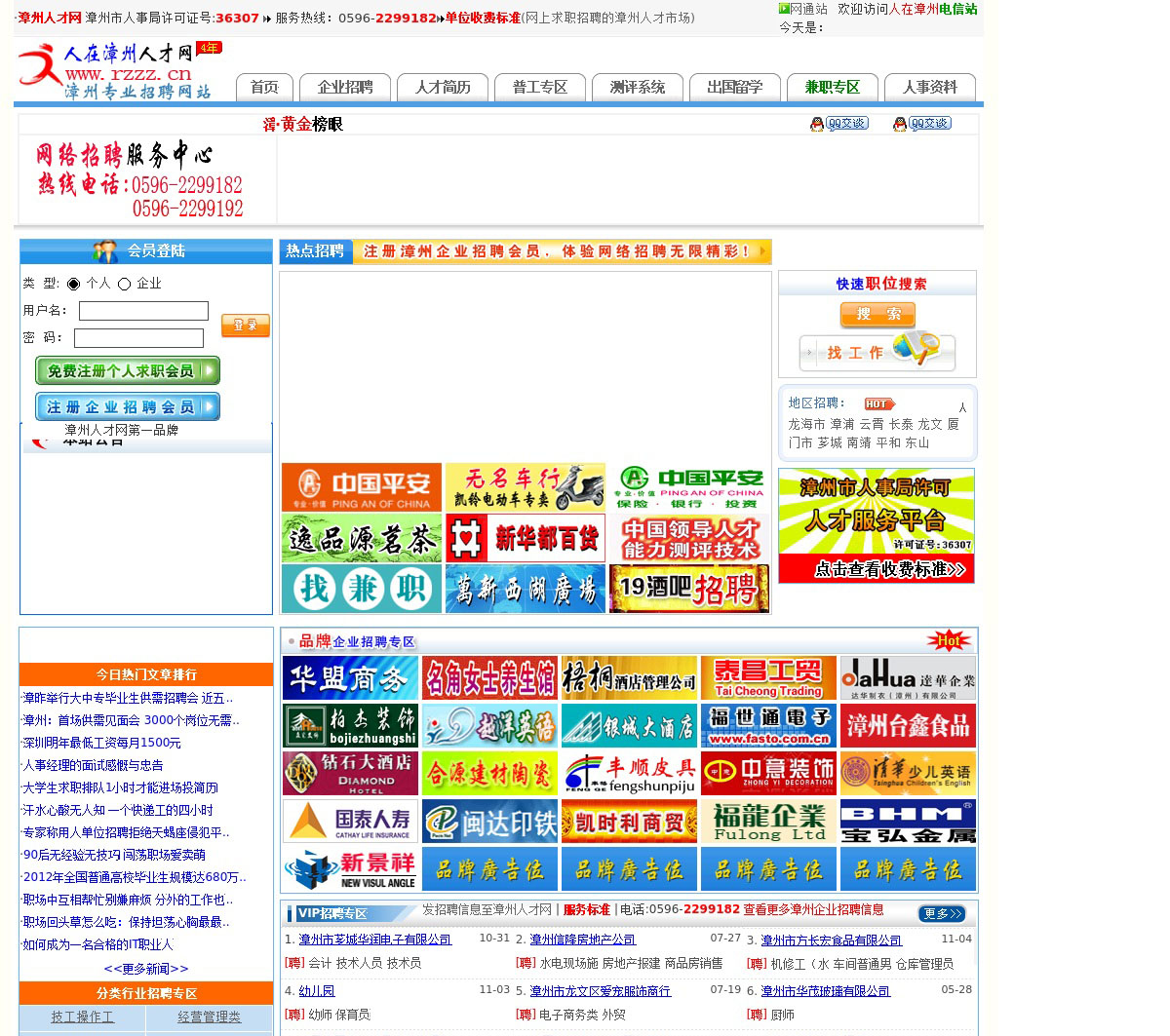 漳州人才网,漳州人事人才网,漳州市人才网上交流中心,领先的漳州人才招聘网站。提供丰富的漳州人才求职招聘信息,漳州人才市场招聘会资讯,每天更新发布数千条漳州人才及漳州招聘信息。