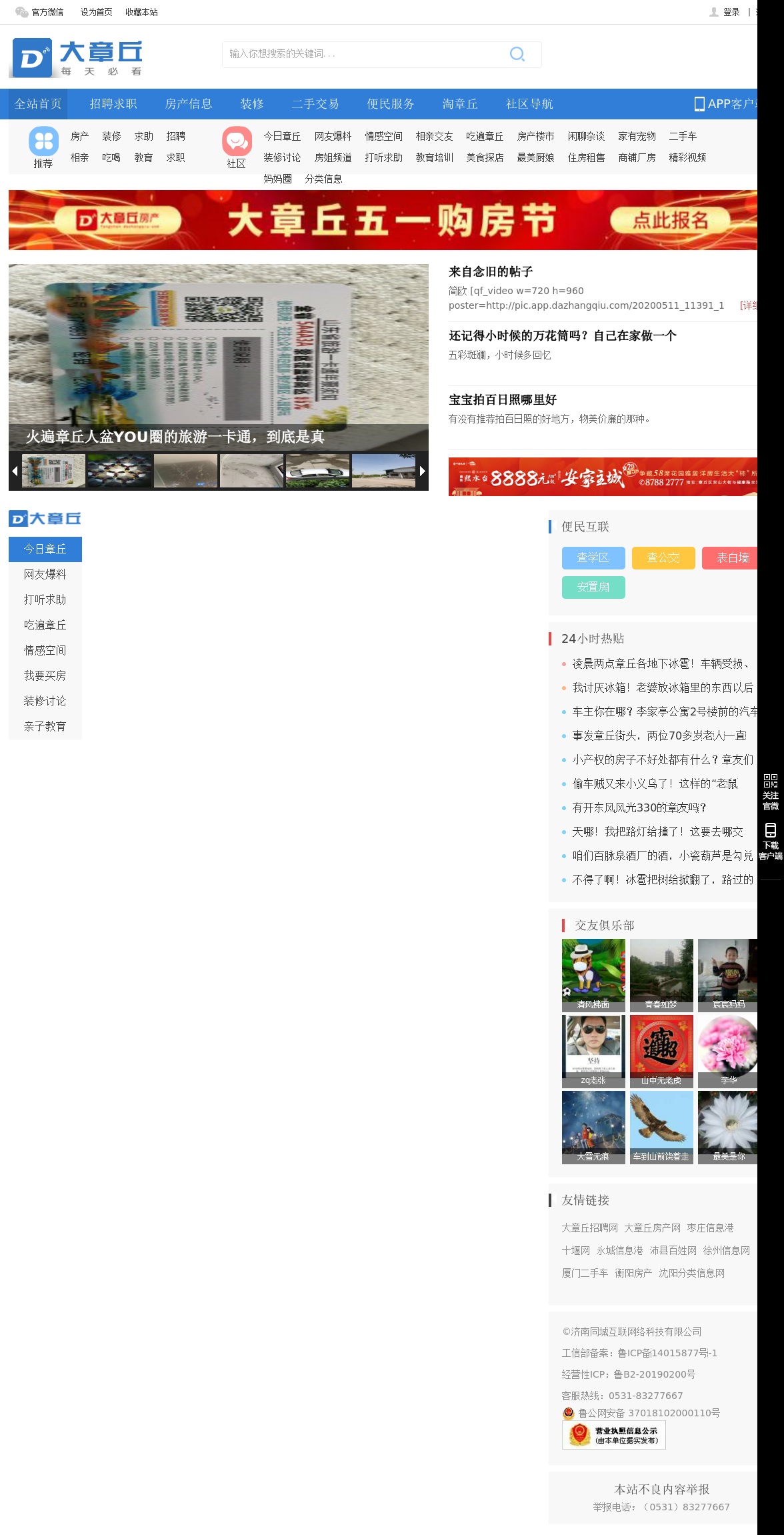 大章丘作为章丘领先的综合信息门户网站,全面提供章丘最新人才招聘、房产、交友、装修、汽车、供求等生活信息,并提供大章丘app下载,深得章丘人的喜爱.