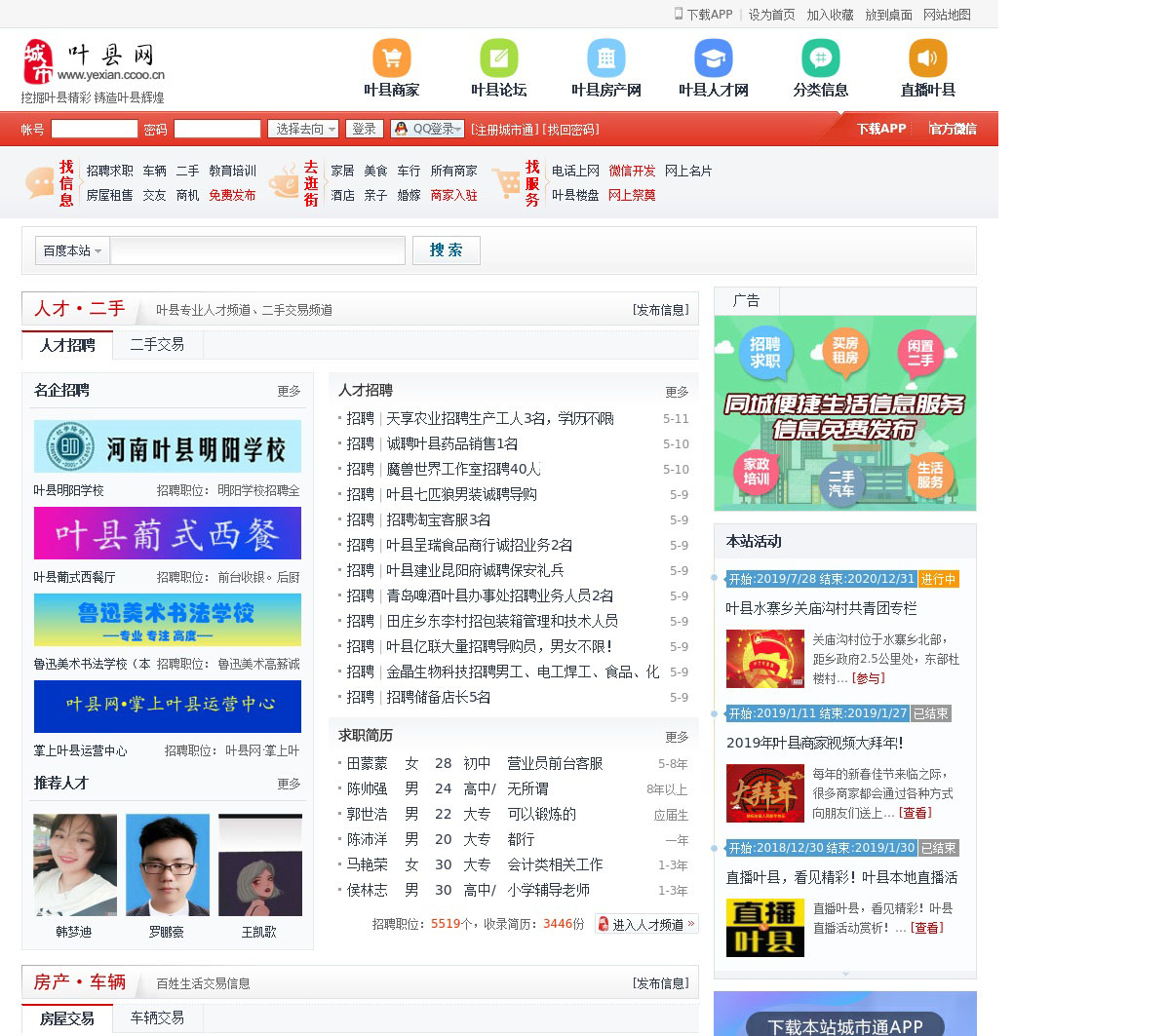 叶县网:提供叶县概况,城市资讯,房屋租售,求职招聘,家居婚嫁,住宿美食,促销优惠,电话黄页,论坛贴吧,网上逛街!个人|商家|企业免费注册!