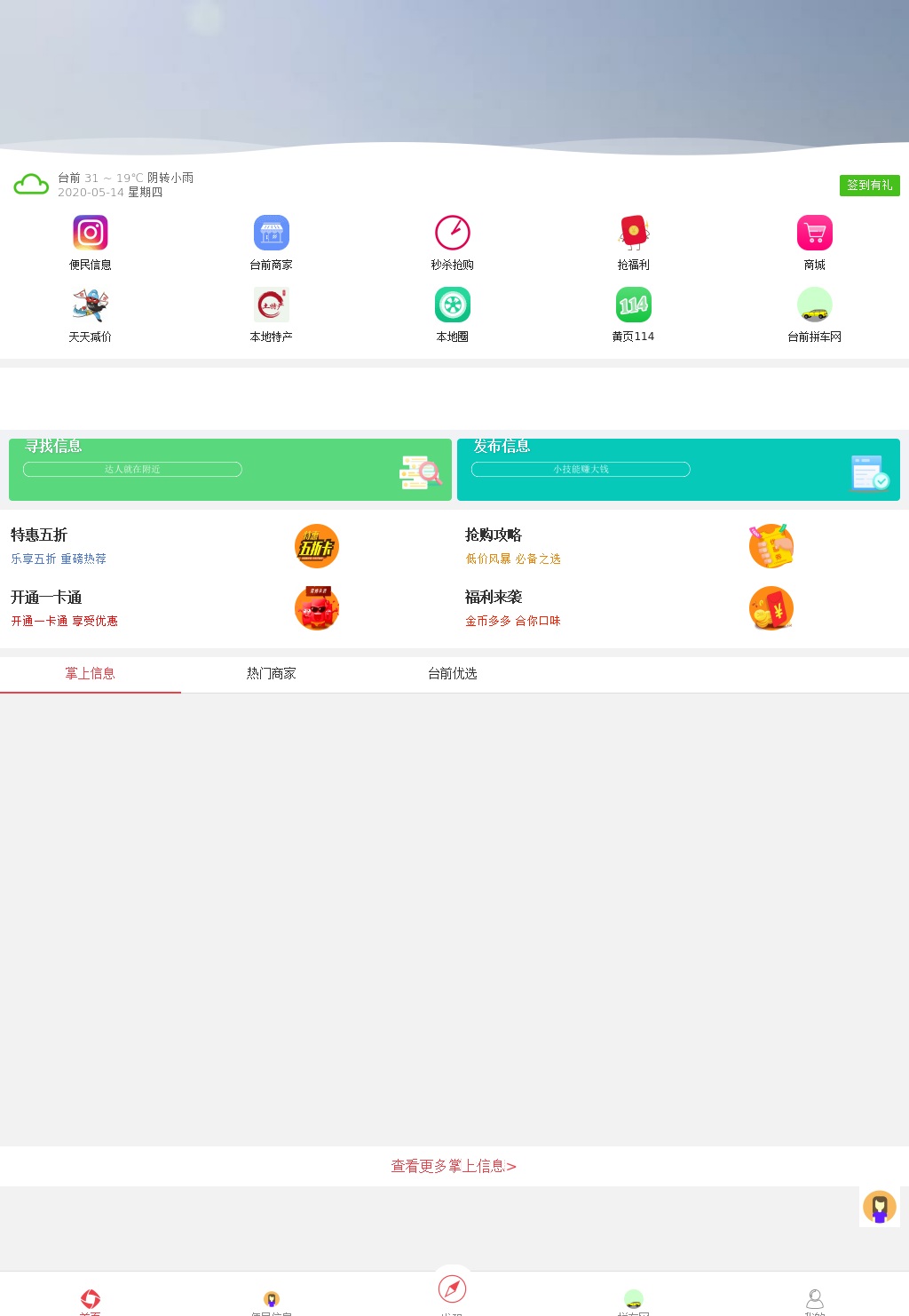 台前网最牛的微信公众号,吃喝玩乐购,衣食住行需,关注一个微信就可以了;