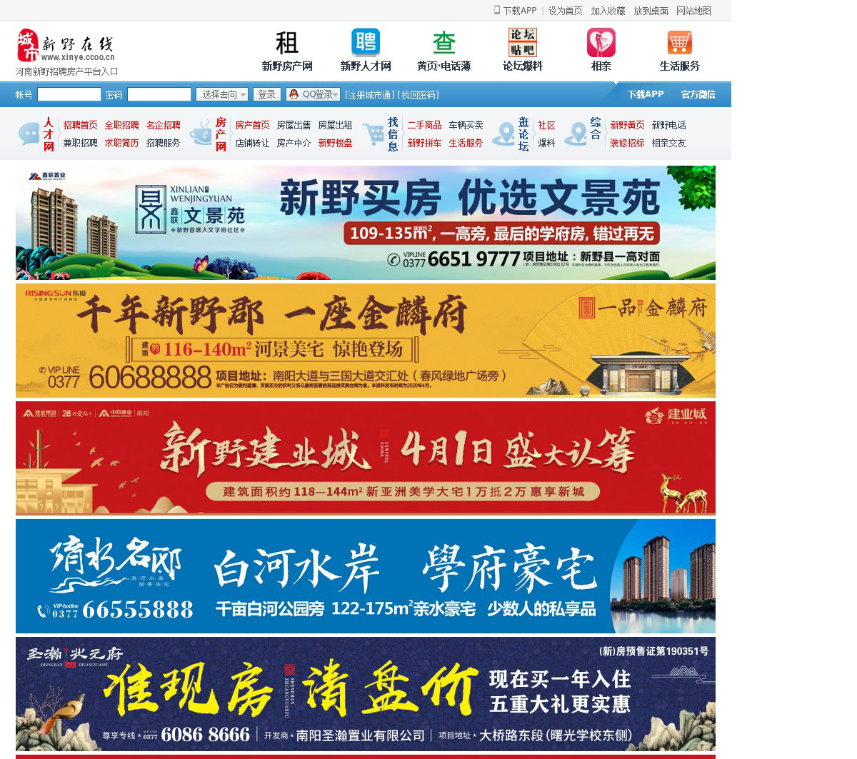 | 低价出售别墅 | 154 | 新野招聘 | 25 | |