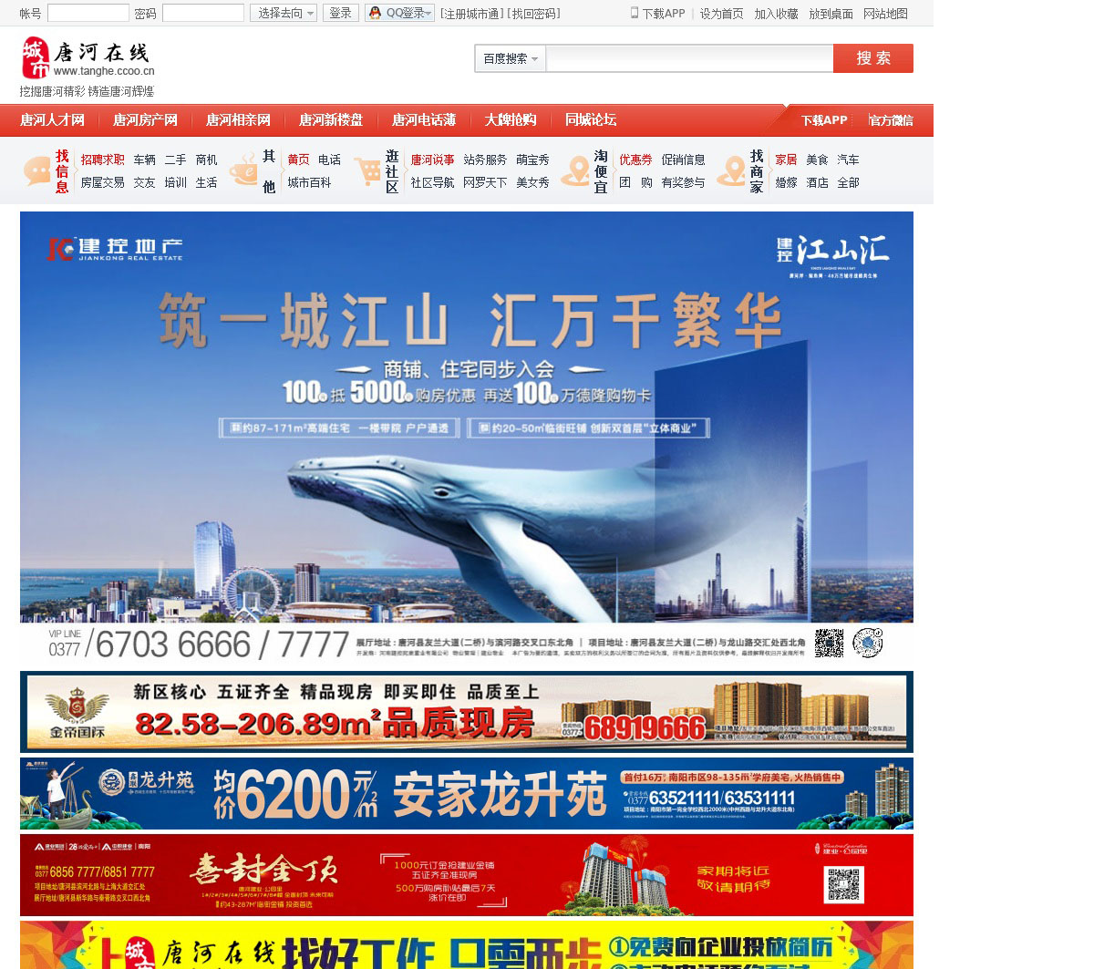 唐河在线,唐河县综合信息门户。提供唐河概况、地图、旅游、特产信息,唐河购物信息、企业黄页大全,唐河房屋出租出售、二手交易、招聘求职信息、问事、法律在线服务,社区论坛交友!