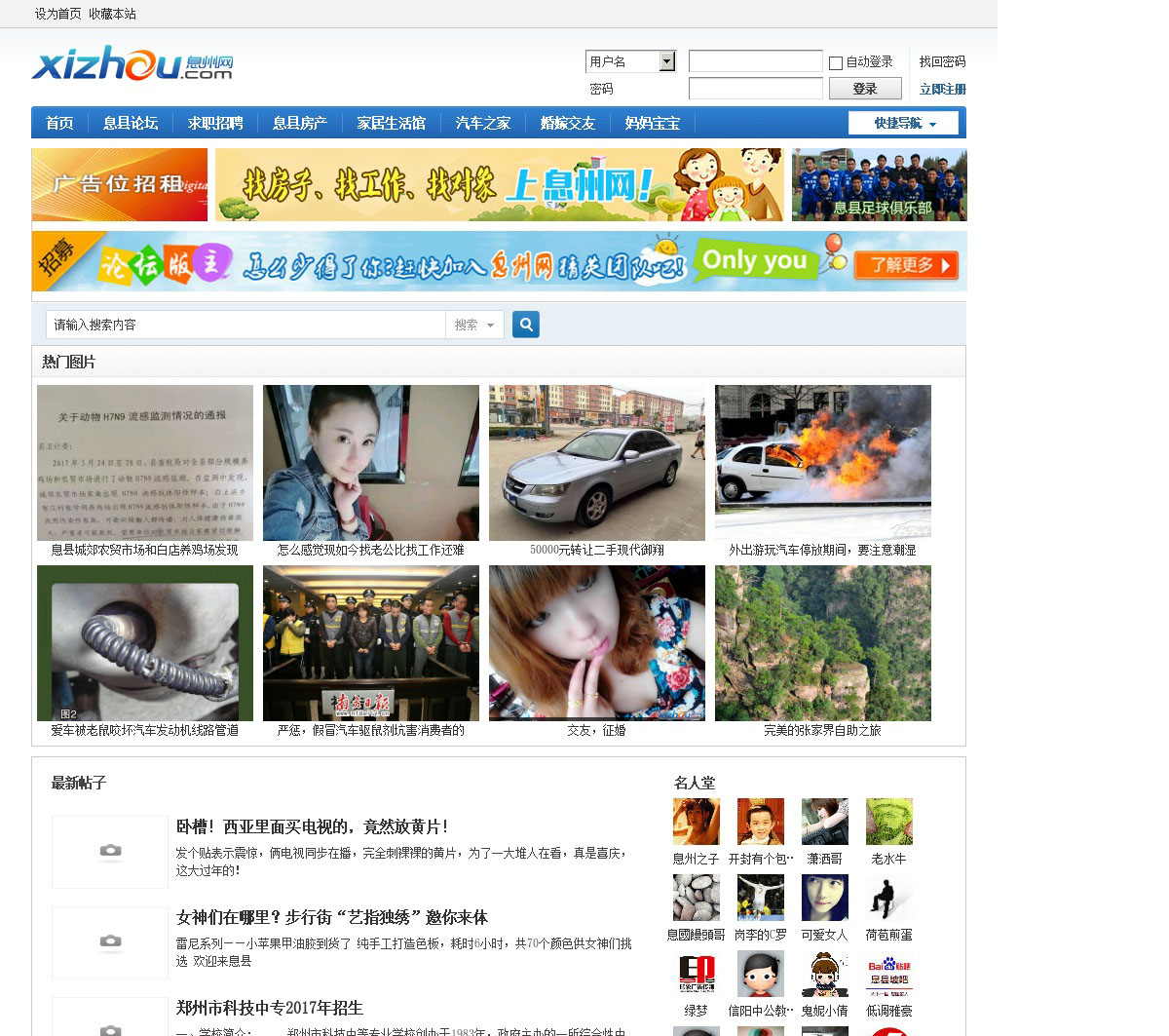 息县论坛,息县首个以本地生活服务为基础,为息县百姓提供美食、交友、健康美容、人才招聘、房屋买卖出租、家居装修、教育、生活消费等便民信息,让息县网民足不出户享受快乐的城市生活。