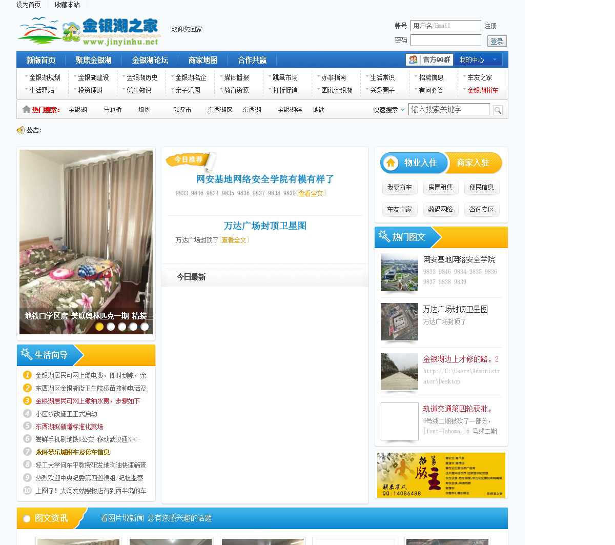 对外界提供了解武汉金银湖的窗口,对金银湖区域内的居民提供生活服务,金银湖居民网上交流平台,共同为金银湖区域的发展努力,本站跟踪金银湖湿地公园、金银湖东方马城、金银湖中学、金银湖楼盘的发展,提供快捷的便民资讯信息