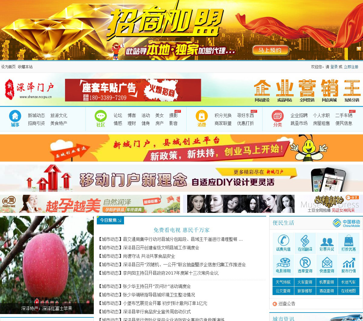 深泽门户—新城门户旗下县城创业平台,深泽吧网上社区,旨在为本地网民提供一个集深泽信息资讯、深泽黄页、深泽企业商家、深泽旅游、深泽论坛为一体的深泽县网上社区。