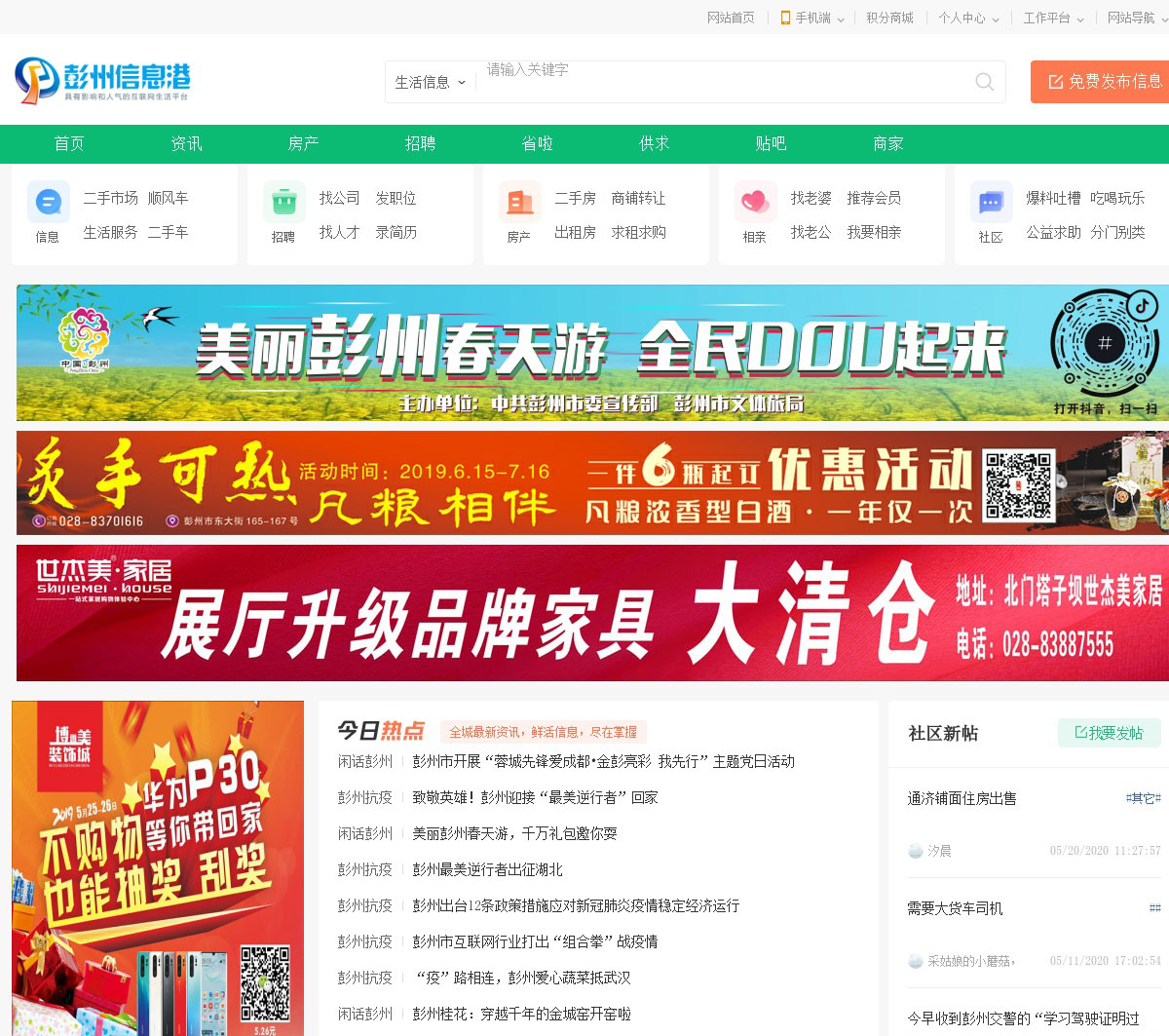 彭州信息港是彭州地区综合生活信息服务门户网站,网站设有彭州论坛,彭州生活,彭州人才网,彭州房产网,彭州论坛,彭州企业黄页,彭州供求信息,彭州征婚交友等频道,为彭州地区提供经济,生活,服务.
