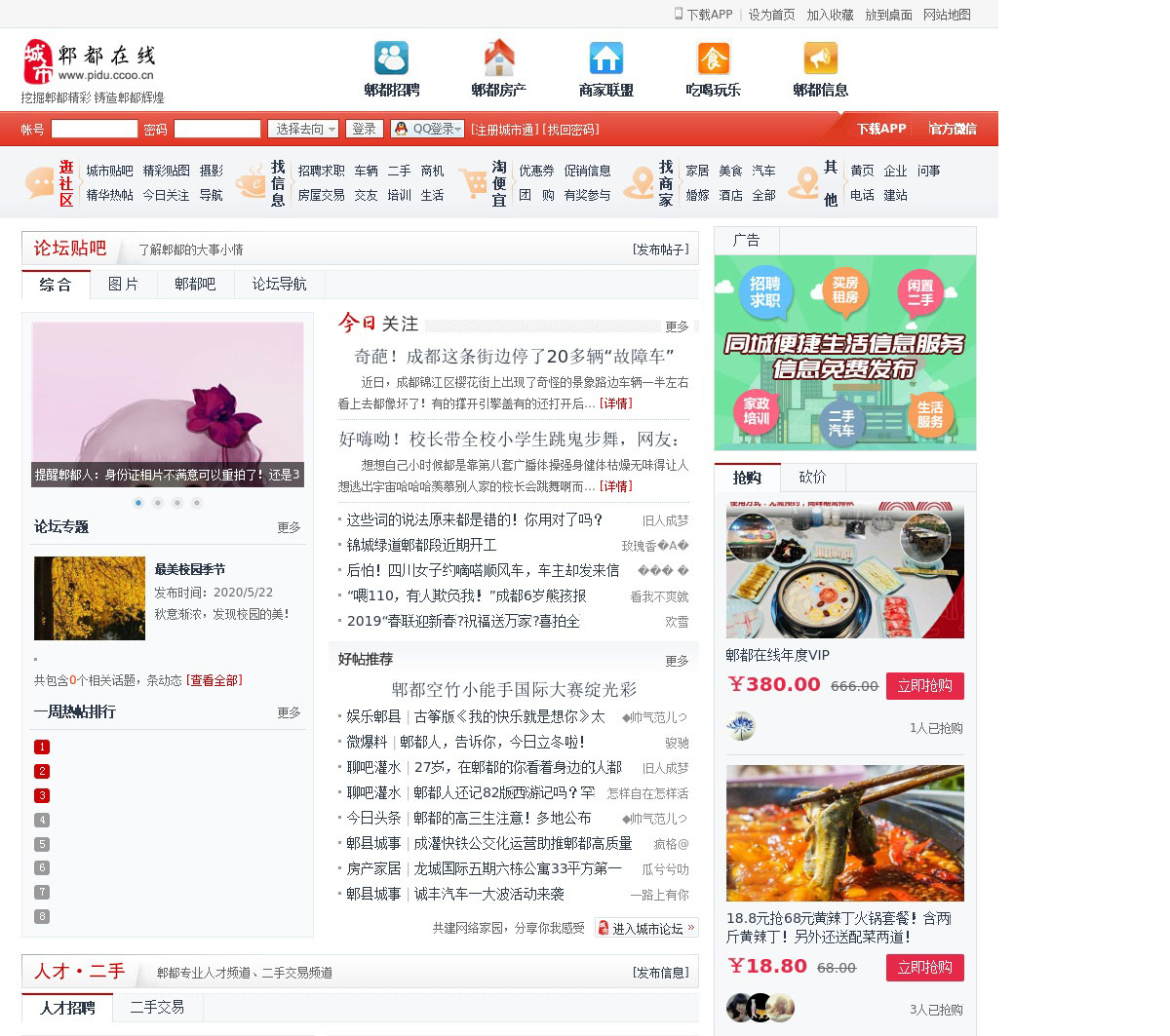 郫都在线(原郫县网)是本地综合信息门户网站,内容涵盖新闻资讯、本地论坛、美食文化、房产交易、车辆买卖、求职招聘、教育培训、同城网购、商家展示、产品宣传、二手市场等频道,是郫都综合网络传媒平台。