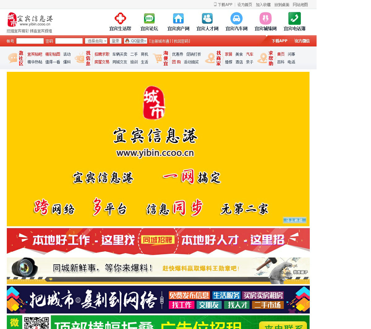 宜宾信息港:提供宜宾市概况,宜宾市地图,宜宾旅游,宜宾新闻,宜宾娱乐,宜宾人才信息,宜宾房屋信息,宜宾饭团团购,宜宾论坛,宜宾企业,宜宾商家等综合信息.