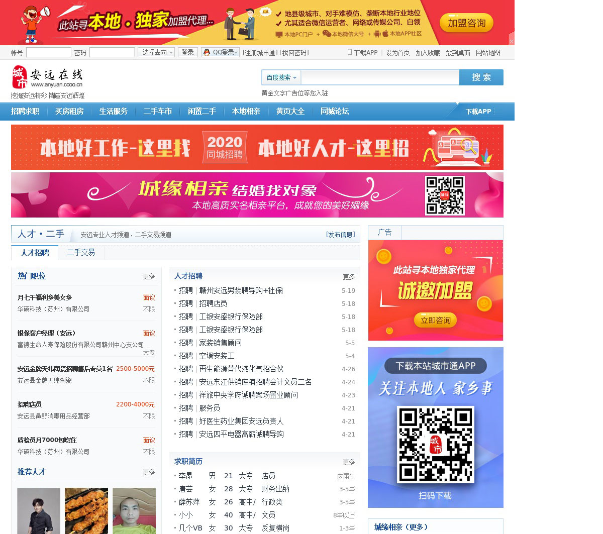 咱大安远吃喝玩乐购生活信息网站,免费为您提供安远美食,房产,招聘,交友等安远生活服务信息的网站。