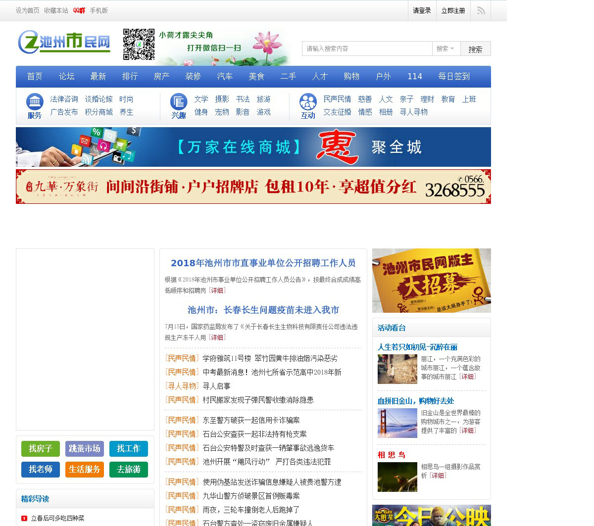 池州市民网池州市民论坛池州生活门户网.汇聚新闻、房产、家居、交友、汽车、公益、美食、购物、婚庆、数码、教育、旅游、财经、团购、分类信息等众多优质频道.欢迎访问!
