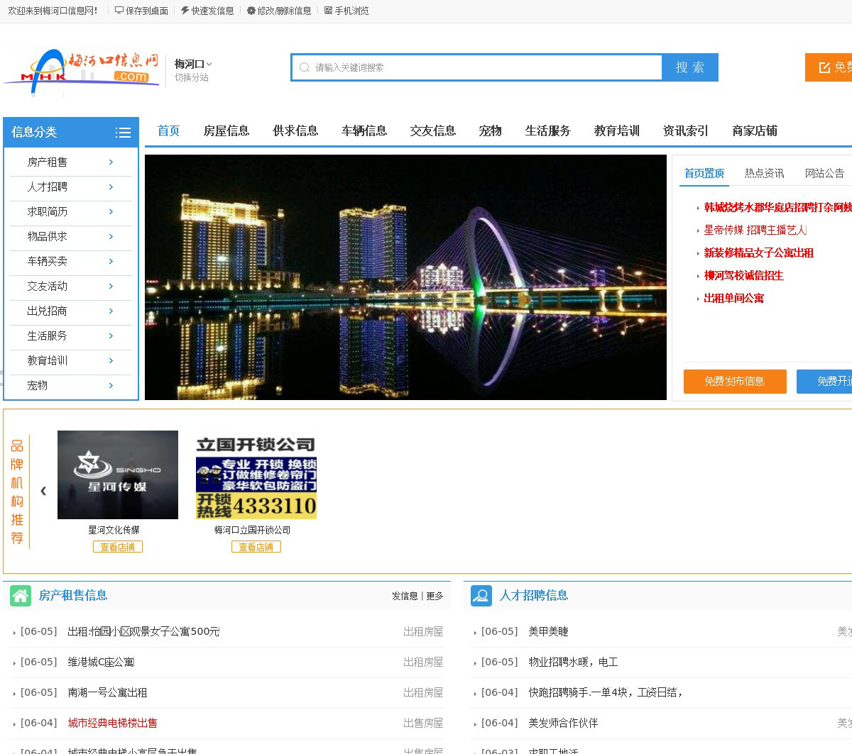 梅河口信息网是梅河口生活信息网站。免费发布查询房产、人才、供求、车辆等栏目。客服电话:--