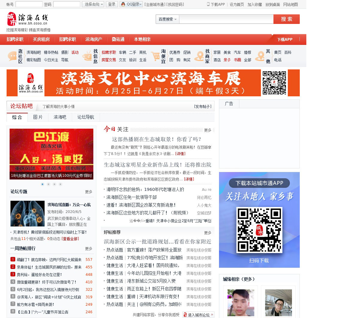 滨海新区最全的互动分类信息平台,最全的新闻整合展示平台,人气的论坛社区,最全的商家一线优惠促销信息,最全的一线黄页信息,全方位为滨海新区的本地人、外地人提供网络互动空间。