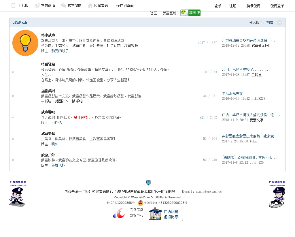| 武宣 | 49600000 | 武宣家园网 来宾论坛 来宾红豆社区 | 43 | |