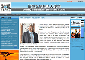该网站为博茨瓦纳驻华大使馆(Embassy of Botswana in China)的官方网站,主要提供使馆概况、最新动态、大使致辞、博茨瓦纳概况、旅游、新闻和签证信息。网站语言有中文和英文两种。...