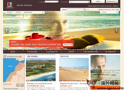 该网站为摩洛哥国家旅游局(Moroccan National Tourist Office)的官方网站,主要提供摩洛哥的旅游活动、旅游景点、旅行信息和图片展示等。...