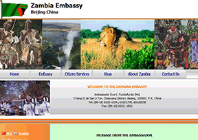 该网站为赞比亚驻华大使馆(Zambia Embassy in Beijing)的官方网站,主要提供使馆简介、最新动态、大使信息、领事服务、赞比亚概况、新闻事件、签证、经贸与投资等。网站语言有中文、英文两种。...
