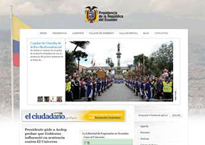该网站为厄瓜多尔总统府(Presidencia de la Repblica del Ecuador)的官方网站,主要发布厄瓜多尔总统的日常活动的所有信息,网站语言为西班牙语。厄瓜多尔共和国(The Republic of Ecuador;简称:厄瓜多尔)位于南美洲西北部,首都及...