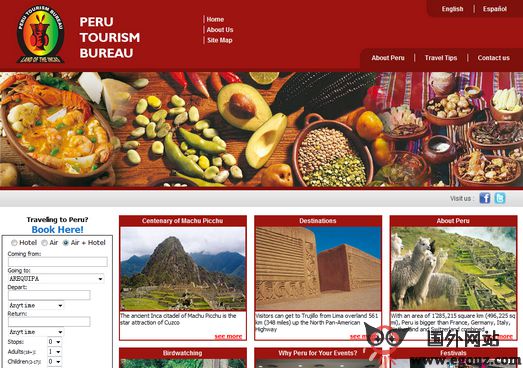 VisitPeru:秘鲁旅游局是一个非政府组织,提供和宣传关于秘鲁的全面的旅游信息,可以了解秘鲁的人文地理、城市景点风光,旅游资讯等。...