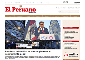 《秘鲁官方日报》(Diario Oficial El Peruano)拉丁美洲历史最悠久、史上最优秀的官方报刊,由玻利瓦尔于1825年10月22日创办。秘鲁任何被一项被通过的法律都要公布在《秘鲁官方日报》上。该网站...
