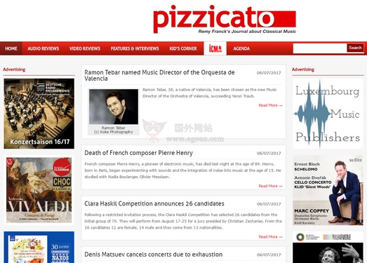 《Pizzicato》是一本古典音乐杂志,成立于1991年,由卢森堡出版商Artevents公司创办,每月在卢森堡发行。杂志的内容包括新闻、特辑、访谈以及CD和DVD评论。杂志每一期都会设置一个奖项,自19...