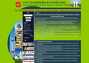 中国驻摩尔多瓦共和国大使馆(EMBASSY OF THE PEOPLES REPUBLIC OF CHINA IN THE REPUBLIC OF MOLDOVA)相关信息: 馆 址: Str. Mitropolit Dosoftei,nr.124, Sectorul Centru, Chisinau, Republica Moldova 邮 编:2004 国家地区号:00373-22 使馆电话:210712 传真:295960...