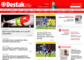 《Destak报》是葡萄牙首份免费报刊,于2001年创刊,主要在地铁、学校、写字楼、食堂、医院等场所发放,内容包括地区和全球性突发新闻、体育、娱乐、经济、汽车、房产、广告等。...