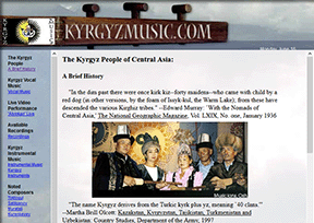 吉尔吉斯斯坦音乐网(Kyrgyzmusic.com)是一个专门收集吉尔吉斯斯坦音乐及中亚传统音乐的网站,主要提供中亚各国著名音乐家和作曲家简介、传统乐器介绍、吉尔吉斯斯坦的民族音乐及其发展等。...