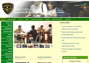 该网站为马尔代夫移民局(Department of Immigration and Emigration,Republic Maldives)的官方网站,主要提供常见问题、入境须知、工作、服务政策、旅行提示、定居、工作签证、表格等。...